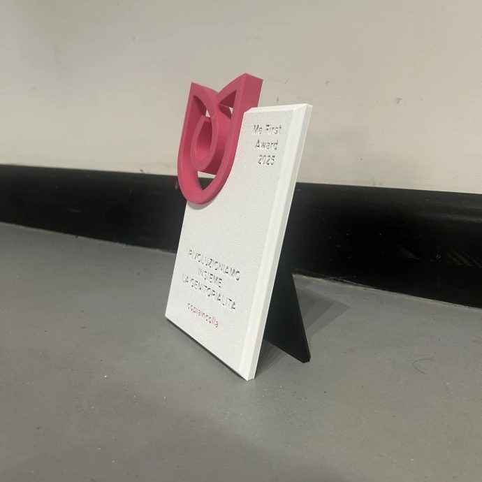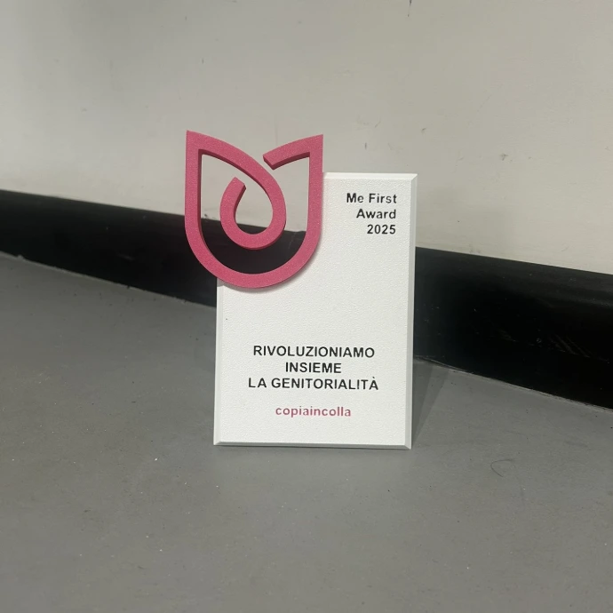 Riconoscimento disegnato su misura per Riconoscimento disegnato su misura per Me First Academy, pensato per celebrare una nuova visione della genitorialita': consapevole, evoluta e centrata sulla crescita personale. Le linee morbide e continue richiamano il concetto di connessione tra individuo, famiglia e comunita', mentre il colore vibrante esprime energia, cambiamento e trasformazione.